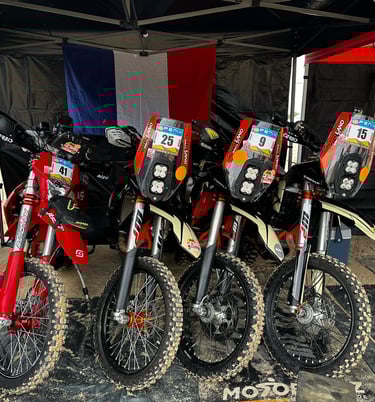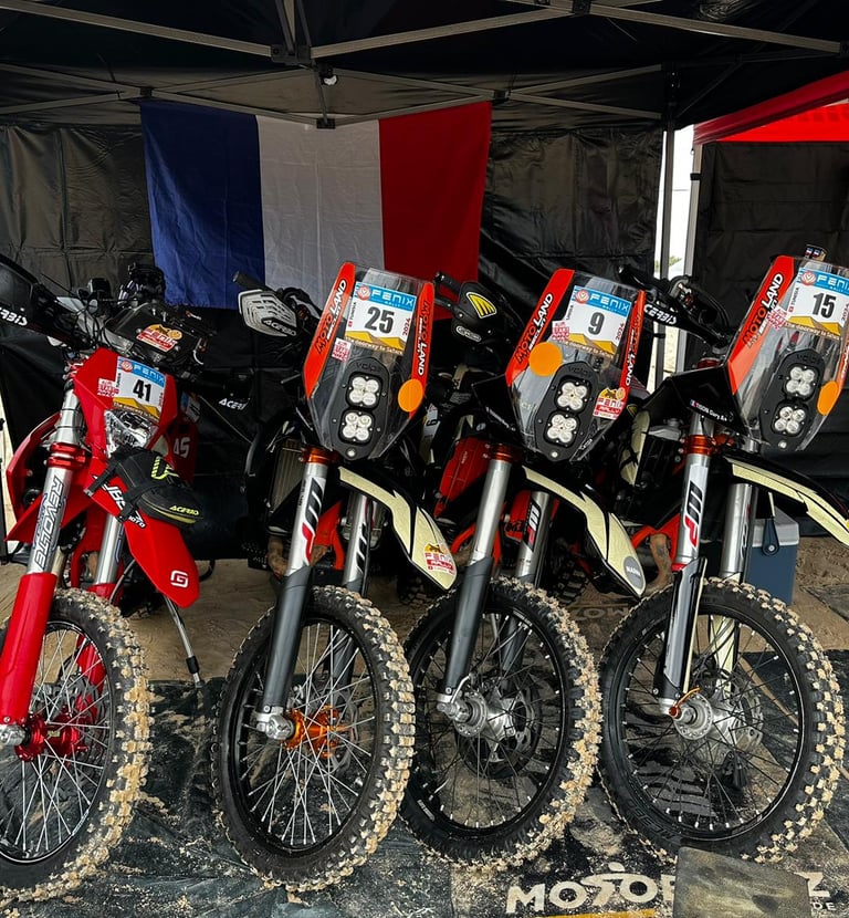 En l'occurrence, avec trois motos engagées, le contrat a été rempli ! Les trois machines sont arrivées au bout de ce rally, avec quelques belles performances. Malgré de grosses chutes, principalement dans les dunes, les kit-rally n'ont pas fait défaut, et chaque pilote a su rejoindre l'arrivée avec sa moto en excellent état.